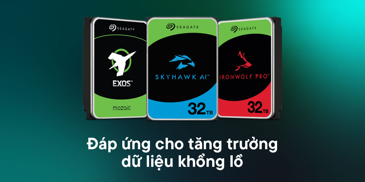 Thông điệp chung cho cả ba dòng sản phẩm: Một bước đột phá về dung lượng CMR 32TB, được thiết kế phù hợp với nhiều khối lượng công việc và nhằm khai thác tối đa giá trị dữ liệu trong thế giới vận hành bởi AI. Dù bạn đang mở rộng hạ tầng đám mây, triển khai AI ở biên mạng hay tăng dung lượng NAS cho dự án cộng tác, ổ Seagate 32TB mang đến sự dẫn đầu mà bạn có thể tin tưởng: hiệu suất tối ưu, hiệu quả và độ tin cậy.